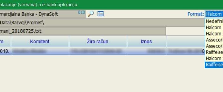 Dodana je opcija paketnog izvoza naloga za isplatu (virmana) u formatu koji zahteva rad sa RaiffeisenBank online aplikacijom. Do sada je bilo implementiran pojedinačni izvoz naloga. Sada je moguće sve virmane smestiti u jednu...